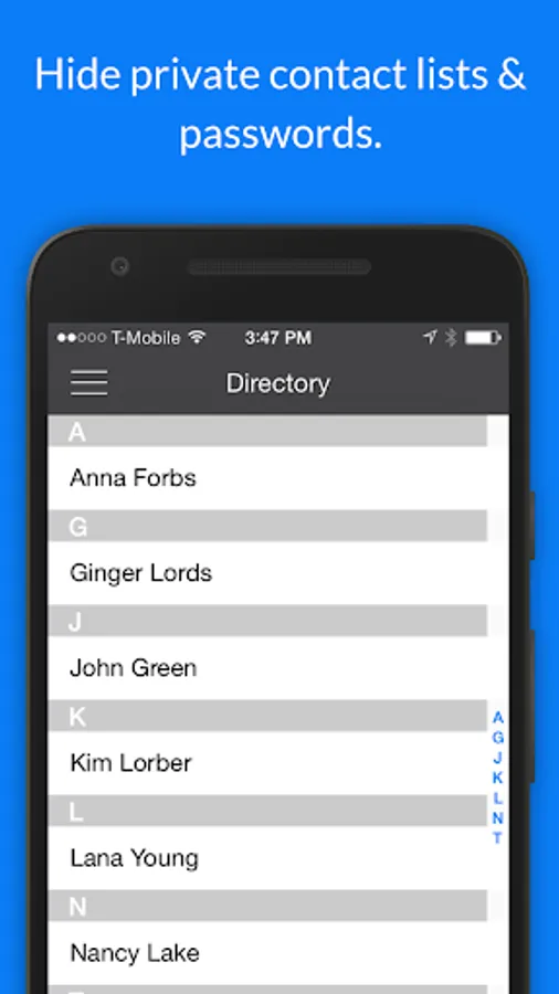 * Secure Contacts: Keep a list of private contacts that are protected and managed separately from your other contacts.