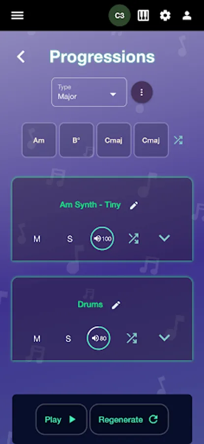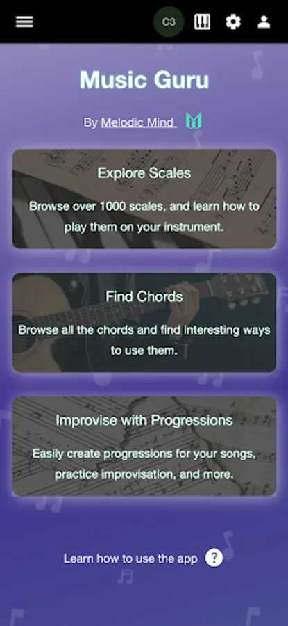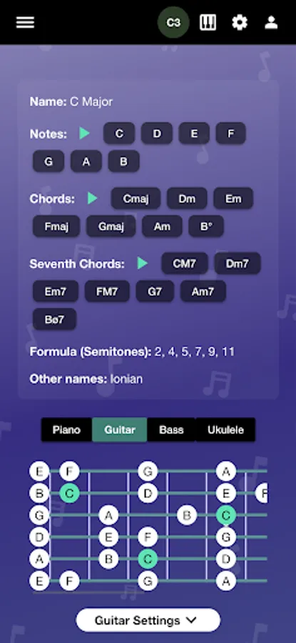 Easily Generate and browse any possible scale and chord, check out chord progressions using different scales and harmonies and even compose your own chord progressions.