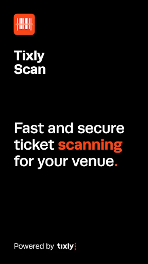 Tixly Scan is a fast and secure barcode ticket scanning app for Android that enables you to scan tickets at your venue using the camera. Just log in and start scanning. All information is stored in our system, and directly available within Boxoffice.