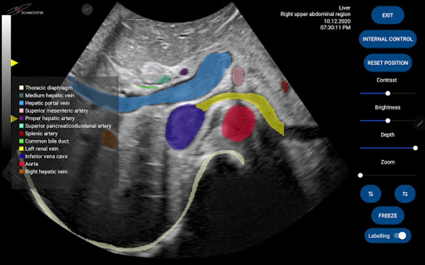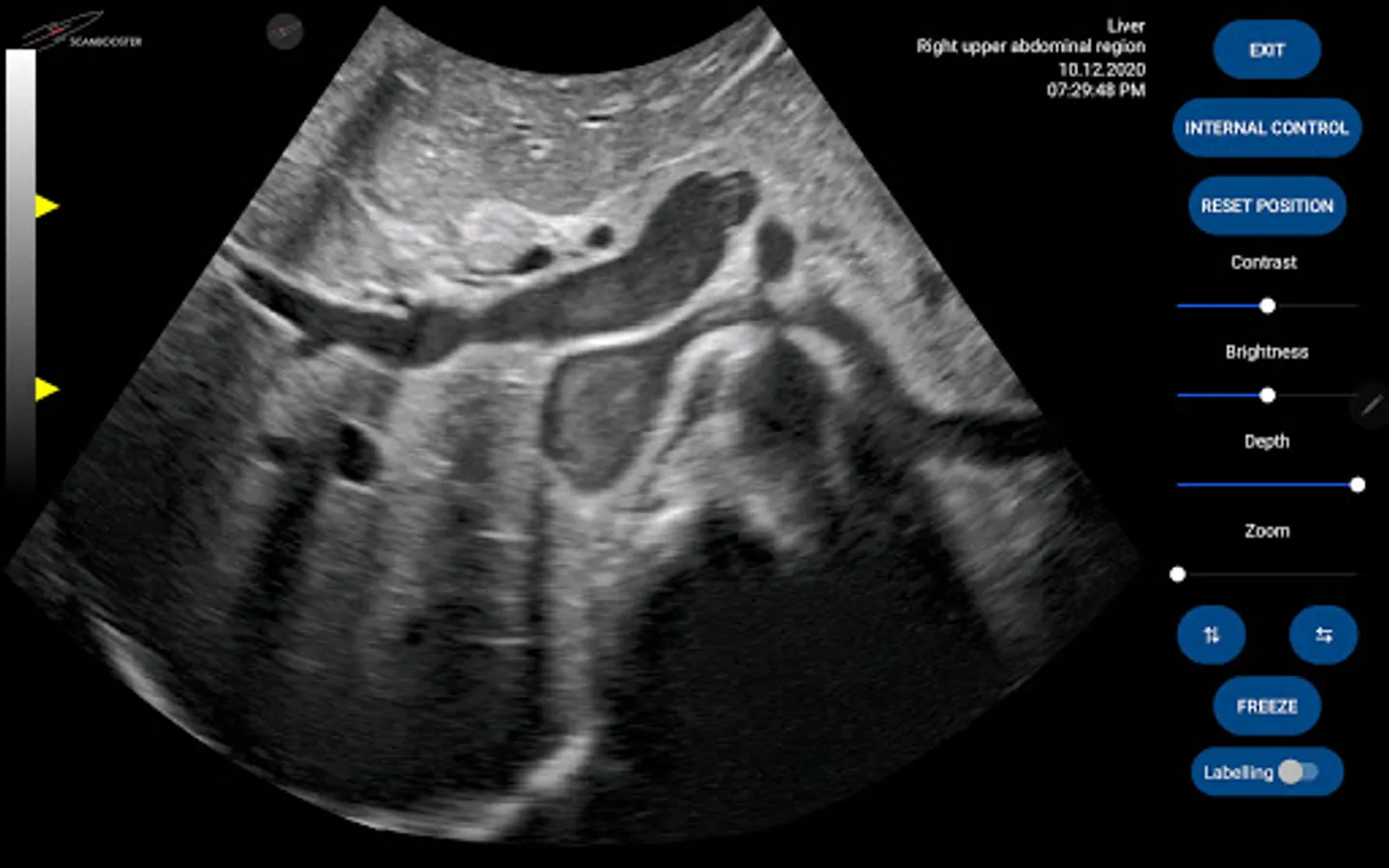 Scanbooster has many options and settings - just like a real ultrasound machine. You can change brightness, contrast, zoom, depth,...and many more. We placed high importance on making Scanbooster feel a little like a real device. That way the transition will become much easier for you when you finally perform your examinations - with real patients and devices.