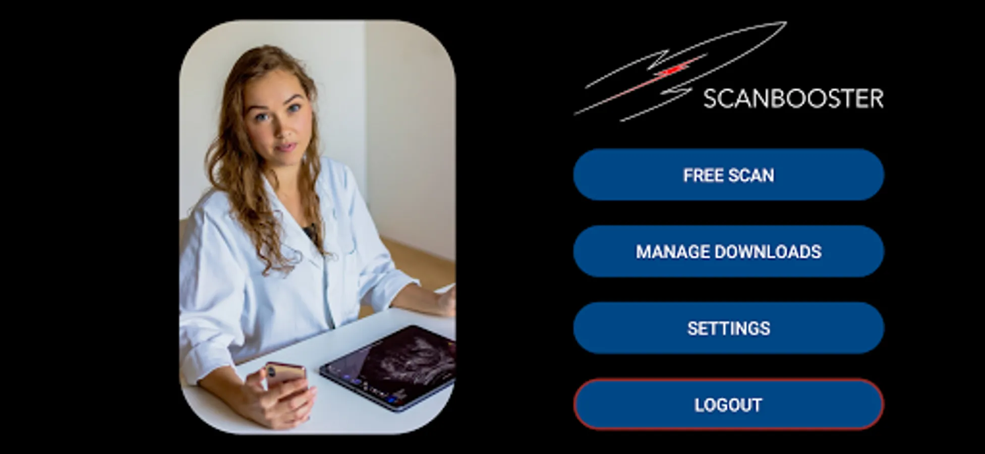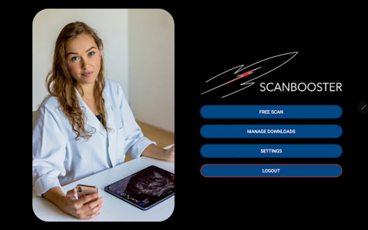 With the optional Scanbooster Control App on your Smartphone, scanning will feel almost like the real thing. Install it to your Smartphone to control Scanbooster on your Tablet. With it, your Smartphone becomes a virtual ultrasound probe. On newer devices, realScan functionality supports all movements: fanning, rotating, rocking, sweeping, sliding and compression - all in the air. Your Smartphone will be transformed into your own virtual ultrasound probe. With Scanbooster Control you'll feel as if your patient was right in front of you!