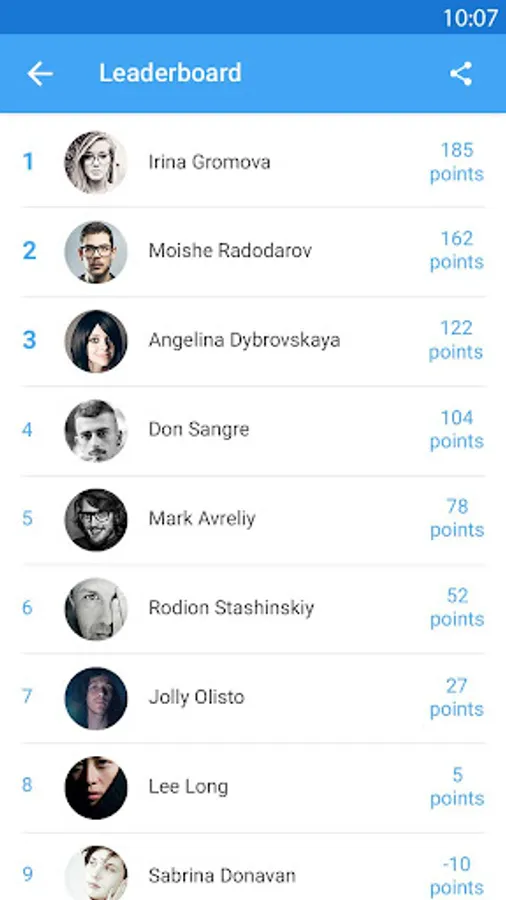 - Share selfies or your rank via email or social networks.