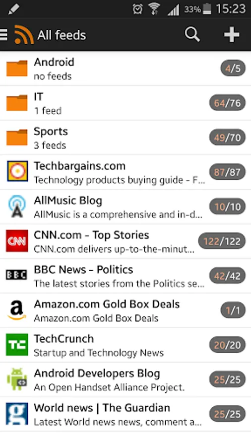 • Automatic sorting news by Date: Today, Yesterday, Older;