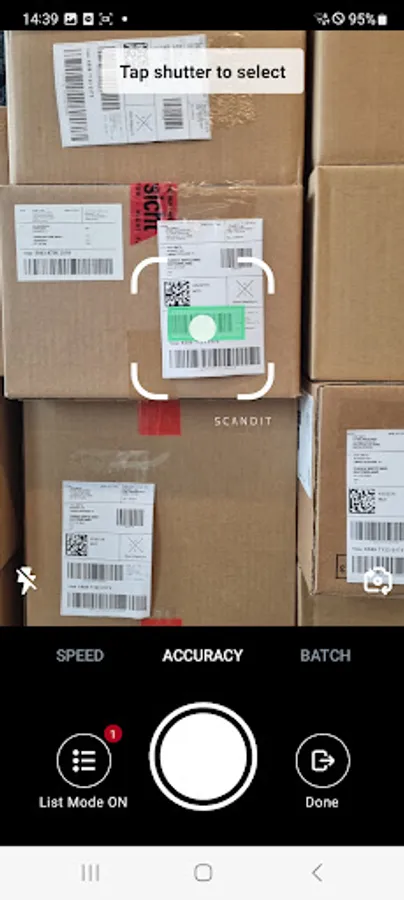 Accuracy mode: when there are a lot of barcodes, make sure you select the desired one out of many with the help of an AR overlay.
