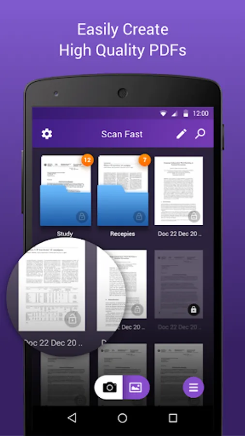 4) That's it! Scan Fast will now keep these documents and scans safely locked away, and ready for your private viewing. Or, transfer existing images into the app and password protect them to create your own private document scanner gallery.