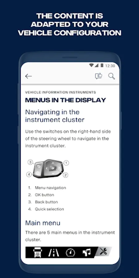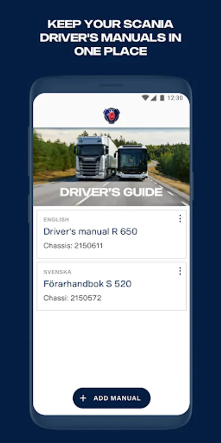 Scania Driver's Guide allows you to download and access your chassis-unique Driver's Manual in your preferred language. The content is adapted to your vehicle configuration and is available offline.
