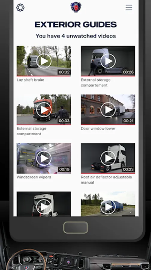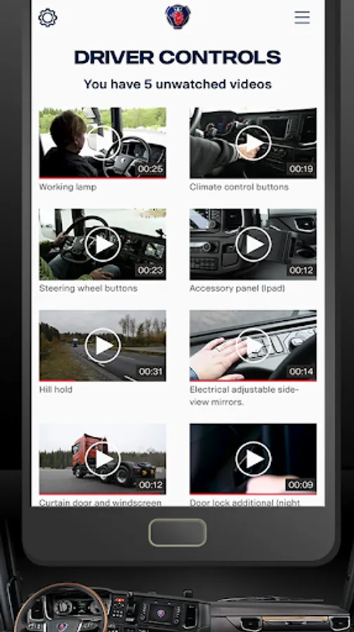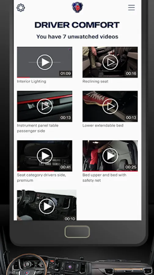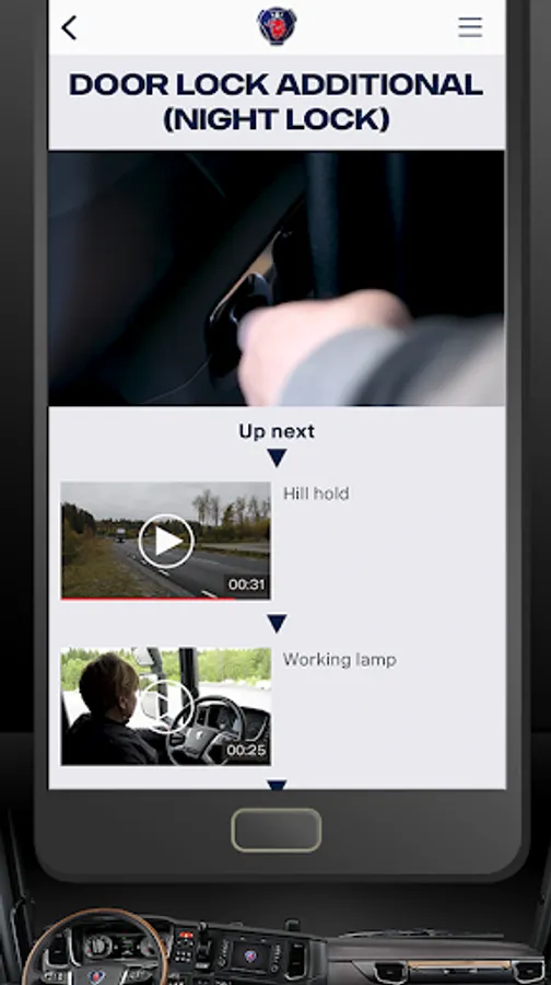 Welcome to Scania Start. A video guide to the new generation Scania. Use this app as a starting point to get to know your vehicle’s operation and features.