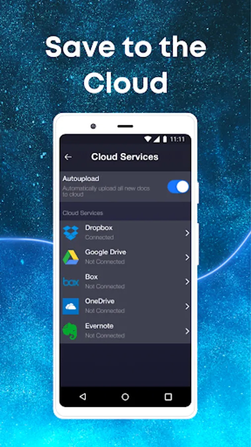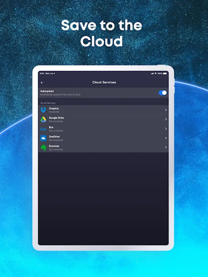 PDF Scanner App - ScanMe also supports document upload to the most popular cloud services (Dropbox, OneDrive, Evernote, box.com, Google Drive).