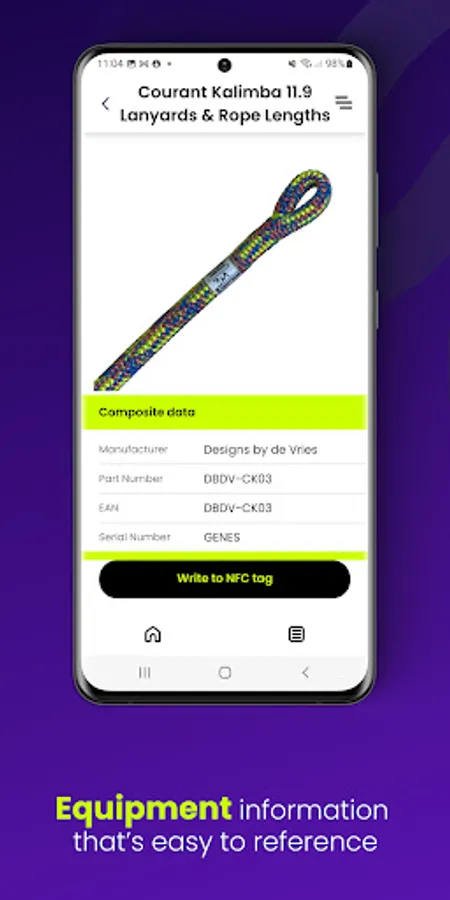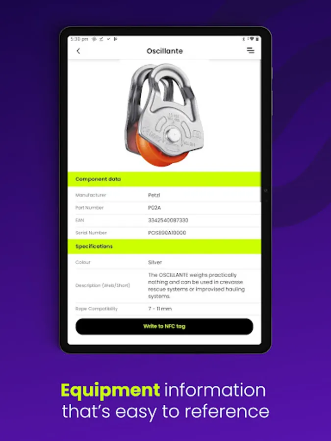 - You can scan ropes and equipment long after the serial number or printed label is no longer readable.