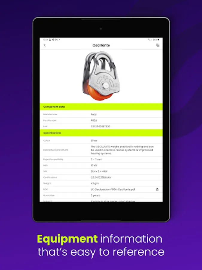 With our comprehensive database of equipment from every manufacturer, you can easily access and save equipment instructions and compliance documents to your phone for when you need them.