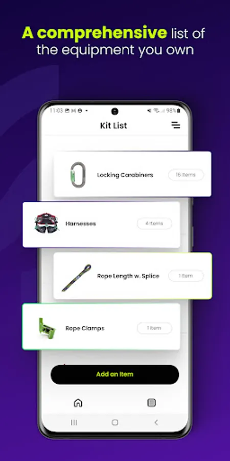 Scannable is the best app for gear management. More than just a checklist app, Scannable makes it easy to scan, search and save equipment from any manufacturer to your kit list, giving you a thorough list of the equipment you own—for free!