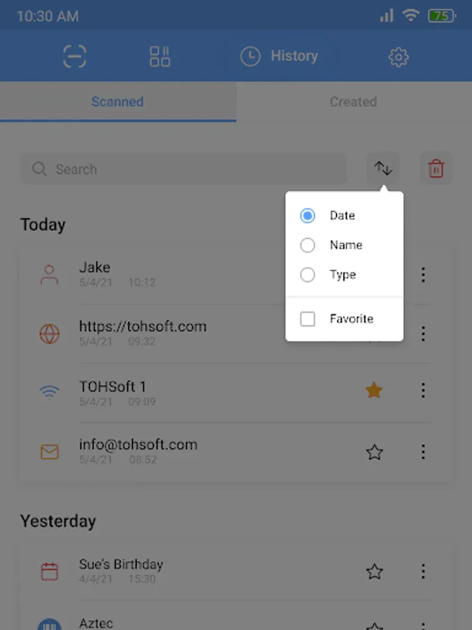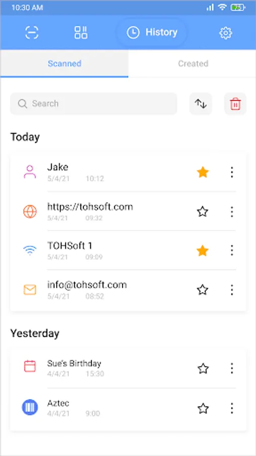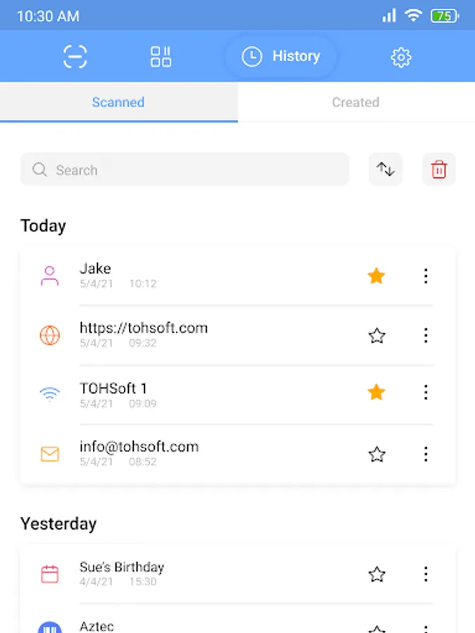 ⭐️ Barcode scanner automatically saves scan history for all barcodes, QR codes created or scanned!