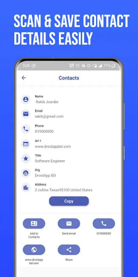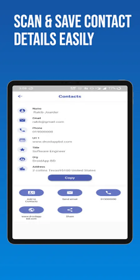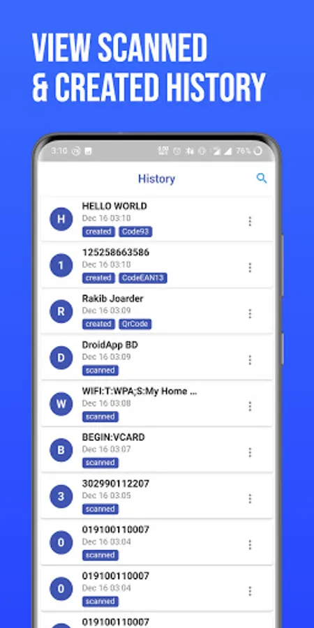 Scan QR Code or any barcode to get additional information including results from various websites! Whether you are a customer seeking the help of a QR code scanner to compare product prices and receive all the retail information or you are a routine user looking for a QR Code generator and barcode creator to save or view contact details, this app is the perfect pick for you. With this Quick Response Code generator and scanner app, you can keep a log of all the scanned and created codes. Save time and effort involved in QR code scanning or other purposes.