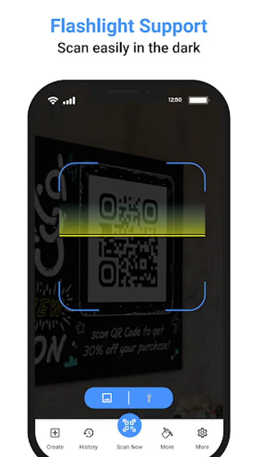 Activate the flashlight for reliable scans in dark environments and use pinch-to-zoom to read barcodes even from far distances.