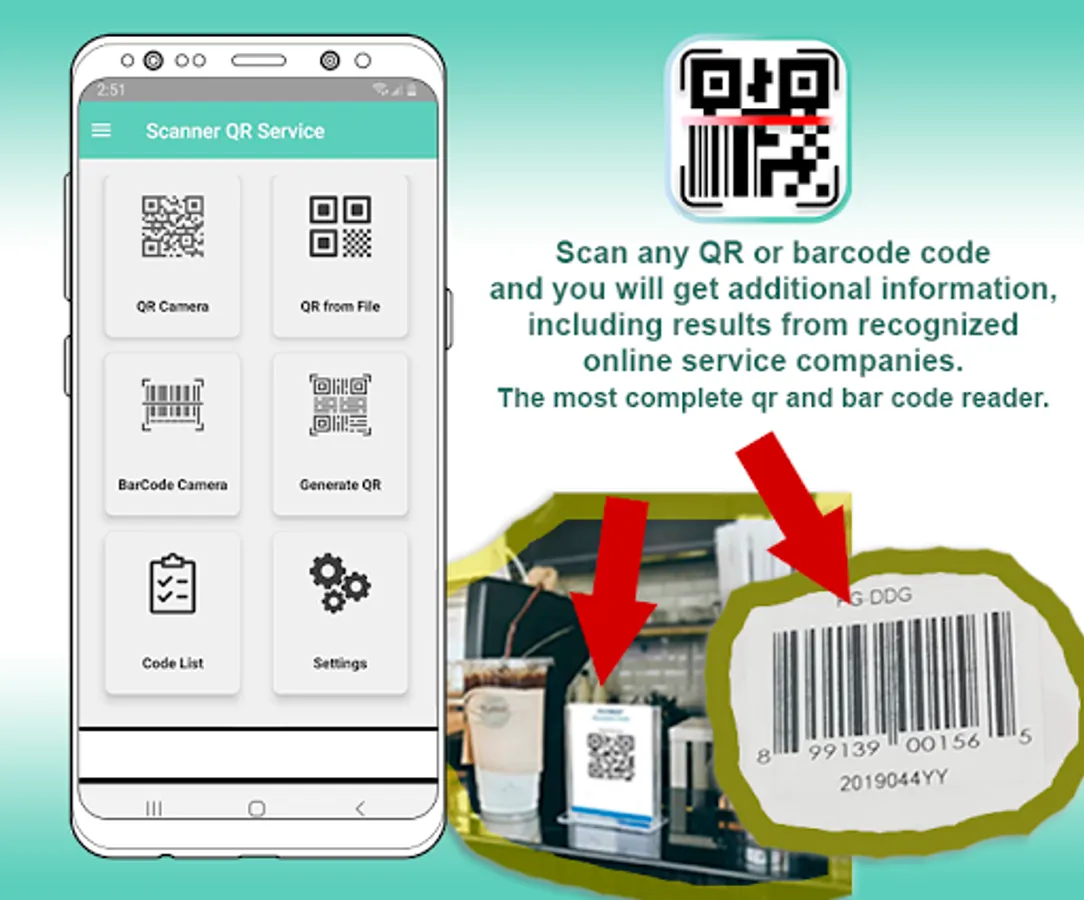 Scanner QR Service can also read and help you verify country origin and product information from a barcode to reduce the chance of purchasing low quality or unknown origin products.