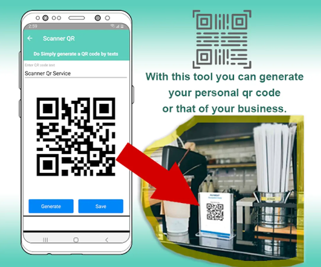 Scanner QR Service It is an authentic scanner with all the features you need, it reads barcodes, scans QR Codes and you can also save and share the generated QR Codes.