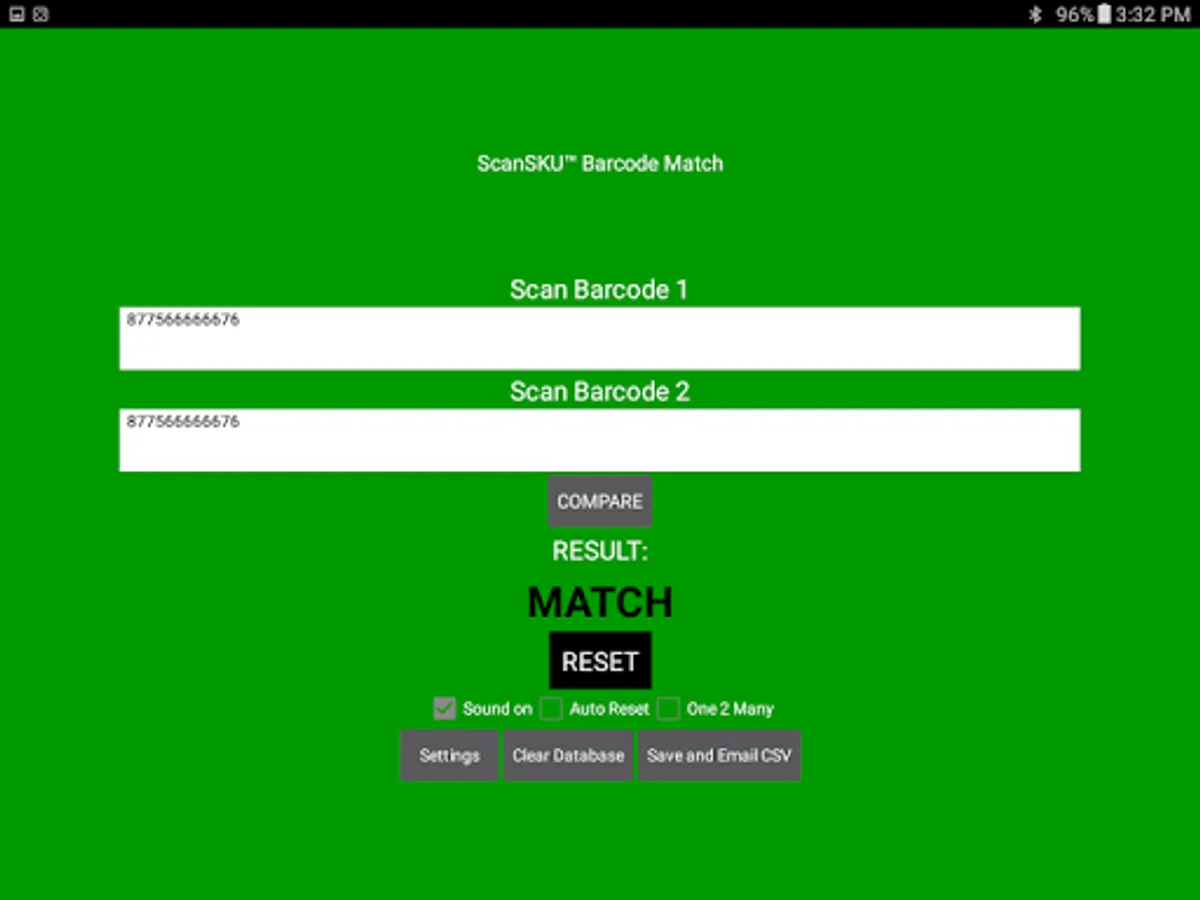 Our ScanSKU™ Barcode Match Lite is designed to compare barcodes for a match. You can compare 1 barcode to 1 barcode, or 1 barcode to multiple barcodes. Perfect for packing orders or quality control.