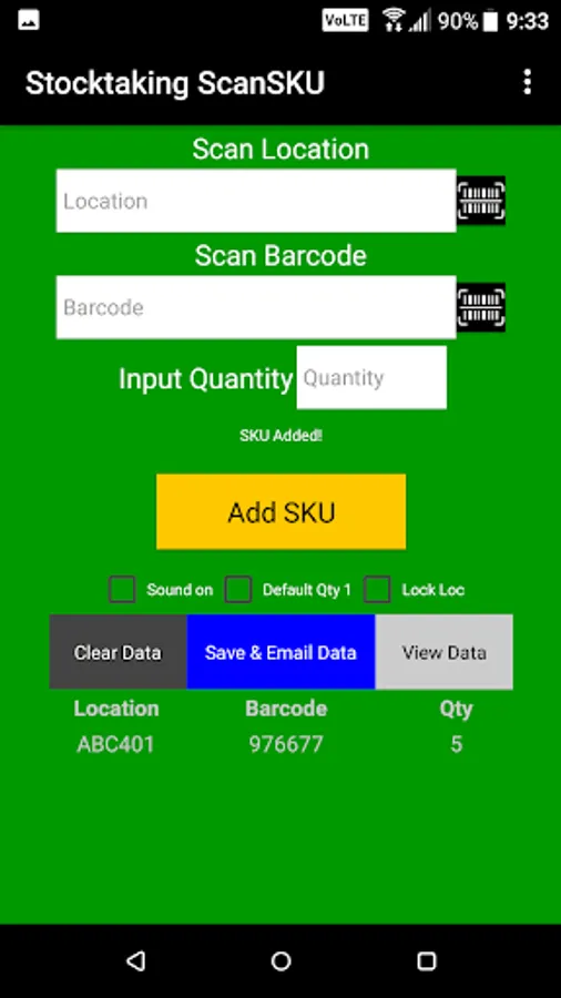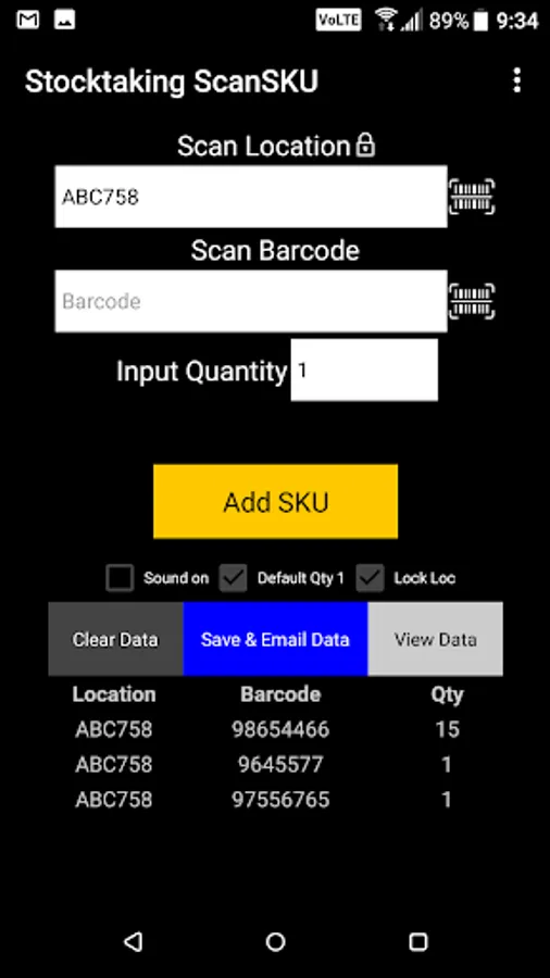 - Location field can be locked, so you can scan multiple SKUs against 1 location, or only have 1 location for a whole stocktake (i.e. ‘Warehouse 1’)