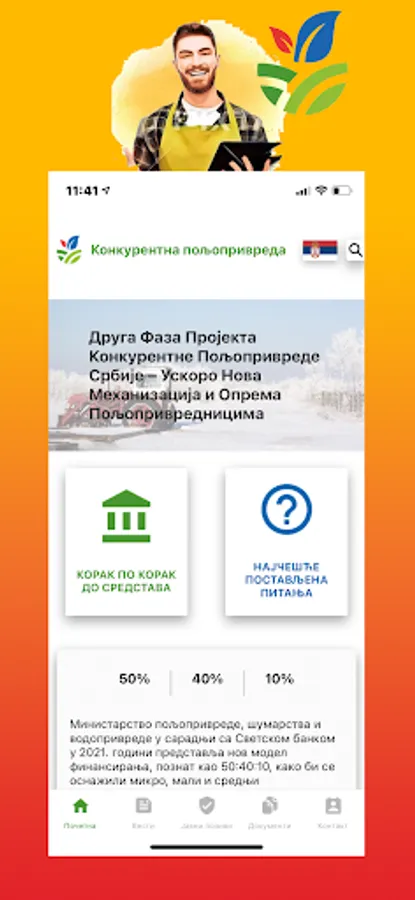 The Ministry of Agriculture, Forestry and Water Management in cooperation with the World Bank in 2021 presents a new financing model, known as 50:40:10, to strengthen micro, small and medium agricultural producers and enterprises, and improve agricultural production and competitiveness through the Project competitive agriculture of Serbia. The mentioned project is actually a part of a new approach in agriculture and will provide support to agricultural producers, small and medium enterprises, who want to learn, improve and develop their capacities and transfer knowledge from agricultural to entrepreneurial approach with agricultural resources. The project will also provide support to agricultural development institutions in the Republic of Serbia by working on capacity building and helping them reduce costs through the use of ITC technology, sustainable access to the environment and effective results, and connecting farmers with banks and the market.