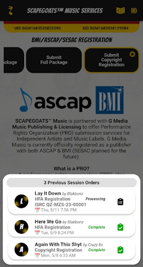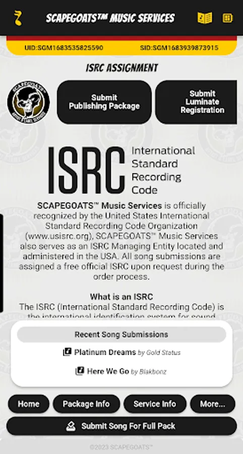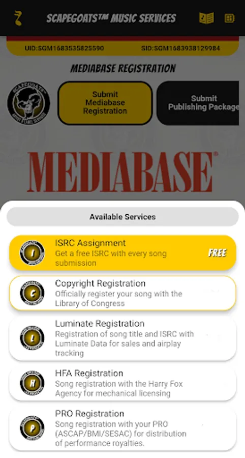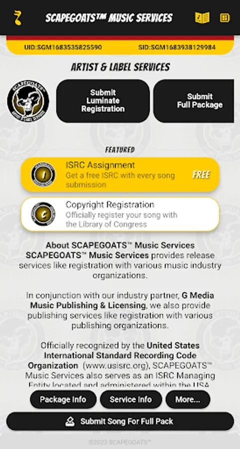 Officially recognized and registered with professional industry organizations including the United States International Standard Recording Code Organization (www.usisrc.org), the Harry Fox Agency, and also, in collaboration with our industry partner G Media Music Publishing & Licensing, officially registered with the Library of Congress and as a publisher with ASCAP and BMI.