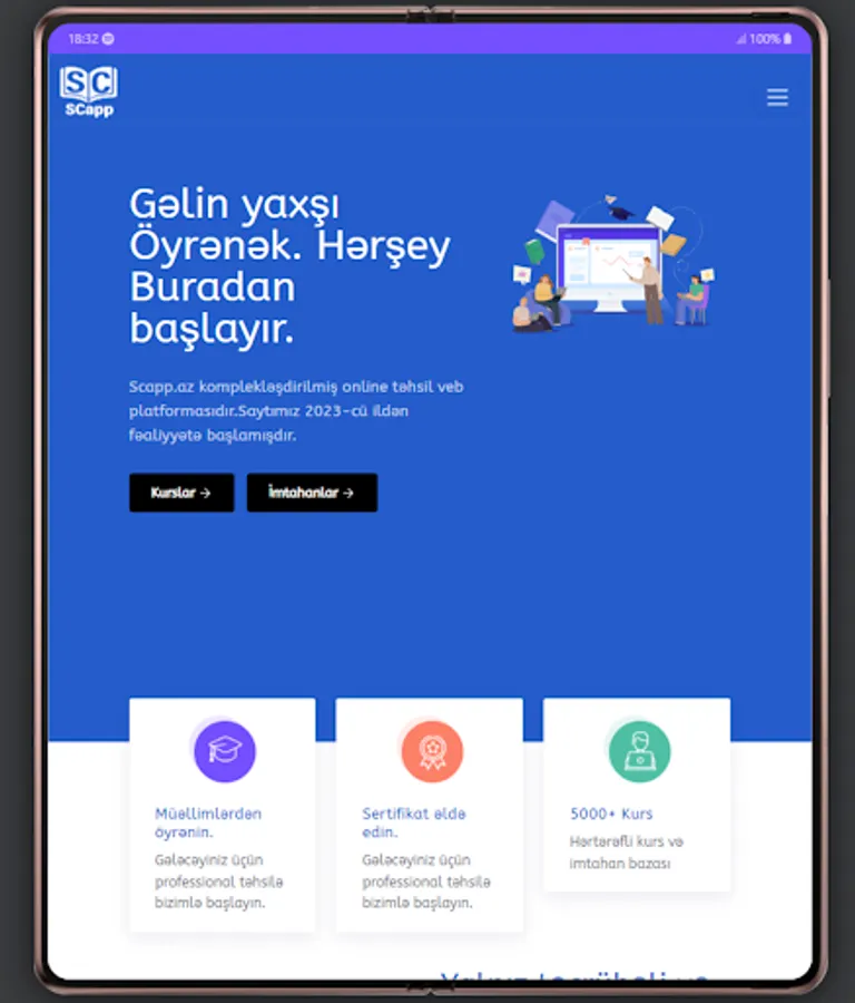 Scapp.az is a complex online educational web platform. Our site has been operational since 2023. Here there are user panels for teachers, students and educational courses. Those who want to use any of these panels should enter the scapp.az website and select the "Registration" section and request they can register by entering the given information. After registration, a confirmation message from scapp.az is sent to your e-mail address to protect your security and data. You can already use scapp.az by opening the existing link from your e-mail address. Every user who registers for the first time as a "Student" user Those who want to act as teachers and educational courses can continue by selecting the "Become a teacher" or "Education course" buttons. How can I become a teacher? - Becoming a teacher on Scapp.az will save your time and increase your income. After registration, select the "Become a teacher" button, select the required information and the field of study you will teach, and finally submit a CV showing yourself and your activities to our website (must be in PDF format) ) you need to apply. Your information is reviewed within 1 day, if your information and your field of study are correctly specified, it is confirmed. A user who has been verified as a teacher can now use all the possibilities set up for the Teacher panel of the scapp.az website. You can get more information about the rules and functions of using the teacher panel by watching the video "Become a teacher". How to create an educational course - Here you will manage your existing course or your newly created course more conveniently and efficiently. After registering, you should select the required information and the field(s) of education you will teach by selecting the "Education course" button, and then apply to our website with a CV showing yourself and your activities (must be in PDF format). Your information will be viewed within 1 day, if your information and your field if it is shown correctly, it is confirmed by us. A user approved as an "Educational course" can now use all the features established for the "Educational course" panel of the scapp.az website. The Scapp.az site provides you with the ability to monitor teacher and student statistics, conduct financial reporting of your income and expenses, recruit new teachers and students, give students and teachers certificates specific to your course, and dozens of other useful functions. You can get more information about the rules and functions of using the training course panel by watching the video "Training course".