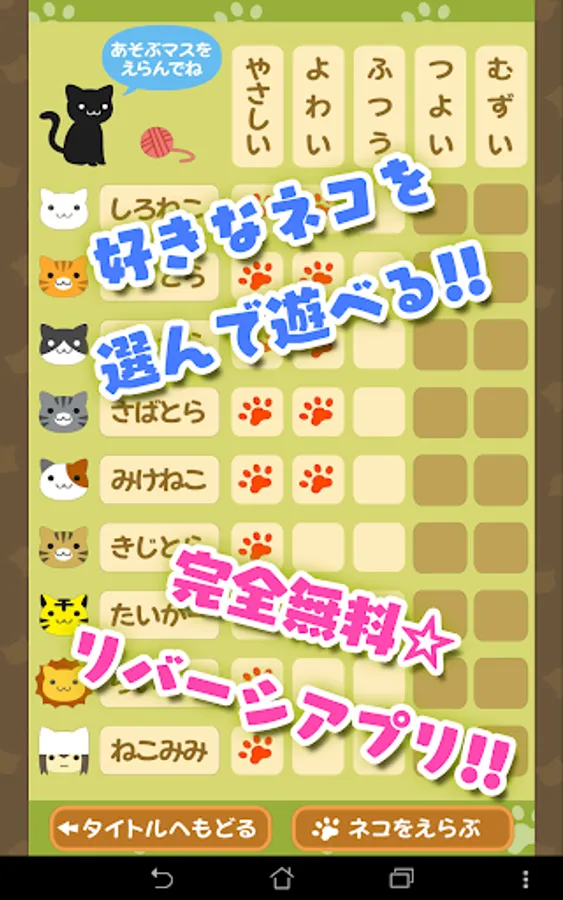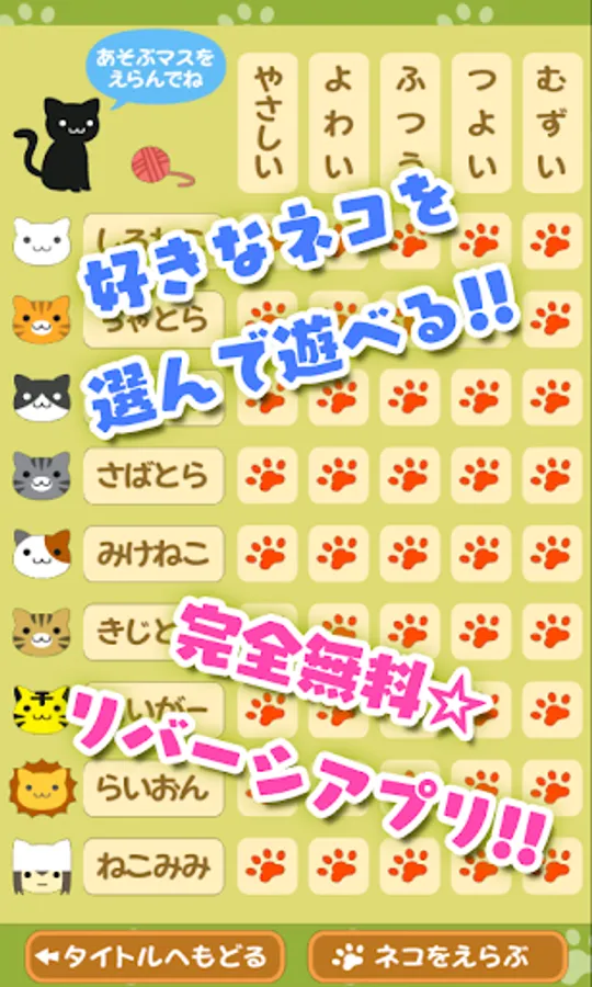 ぜーんぶがねこづくしな、お手軽ゲーム♪