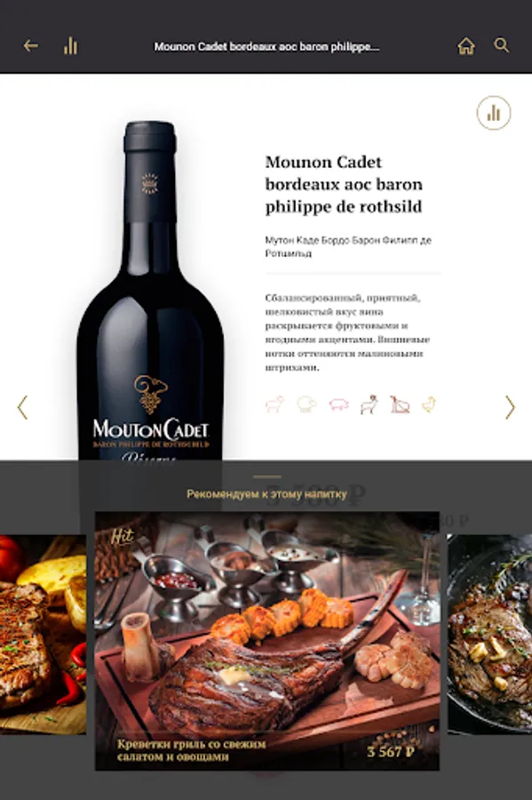 Winechef is a bright electronic bar list for your restaurant on a tablet and a convenient online wine list builder. The intuitive interface will make the wine selection process simple and conscious for the guest, and the ability to set the combination of your restaurant's dishes with drinks will help to do cross-sales and, as a result, will increase the turnover.