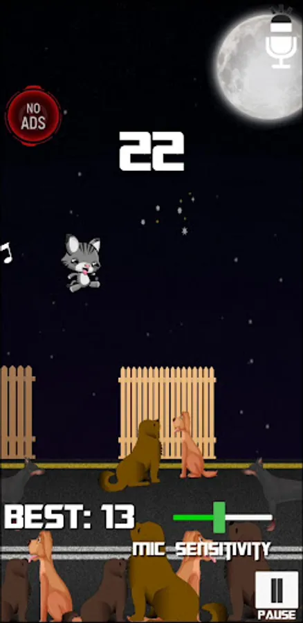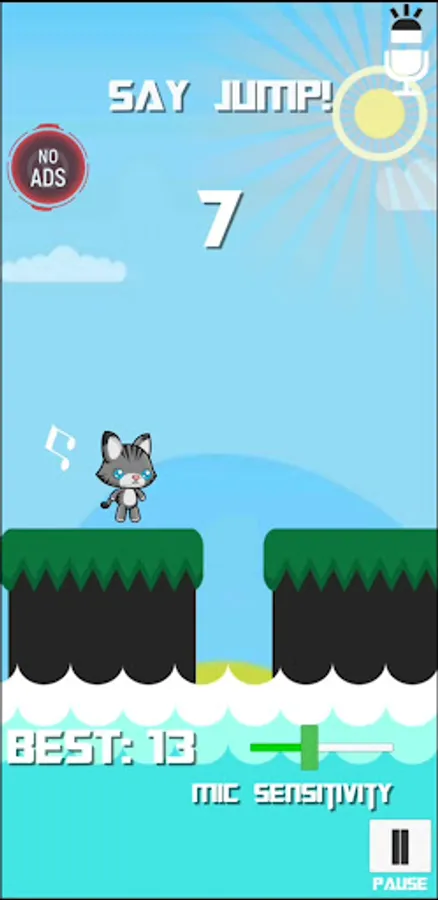 Scaredy Cat is in trouble and can only be saved by your voice! Help Scaredy Cat on its journey by telling it when to jump across the grassy platforms to safety. Time your spoken instructions to Scaredy Cat perfectly, and play with an adjustable mic sensitivity for your voice in the game. Scaredy Cat will sing to itself in order to keep calm, so make sure that the cat can hear you clearly by adjusting the microphone sensitivity bar higher for quiet environments and adjust the bar lower for noisier environments. Playing this game in a quiet environment is recommended for best results. Lots of fun for persons of all ages!
