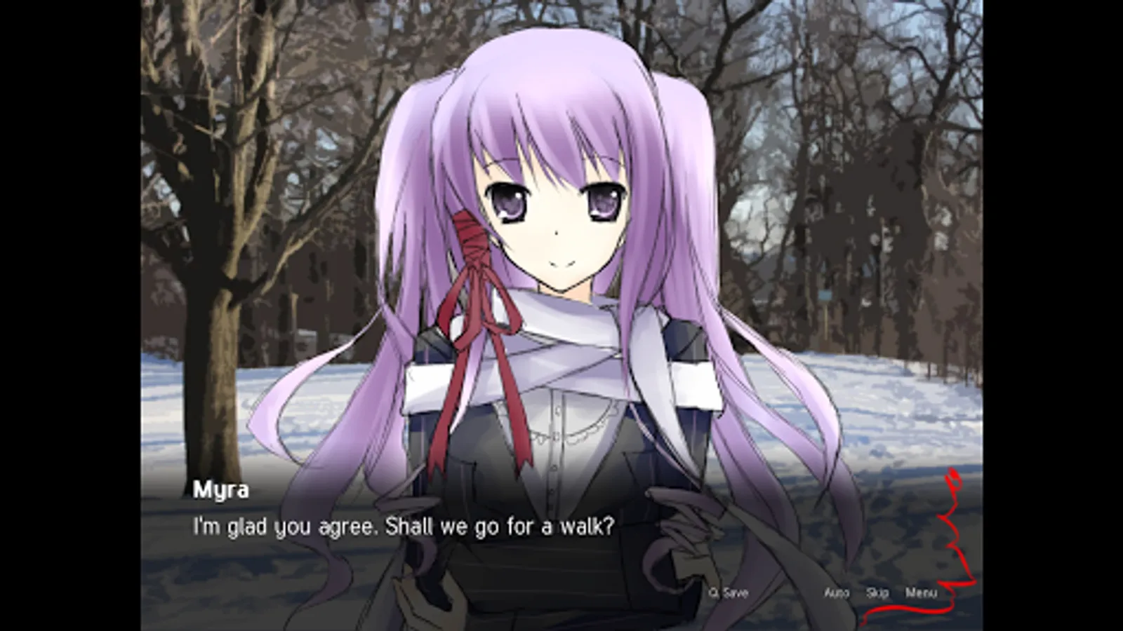 Sepia Tears is a romance visual novel. It's about a memory that a boy named Mark tries very hard to forget, and a girl named Myra who unearths it.