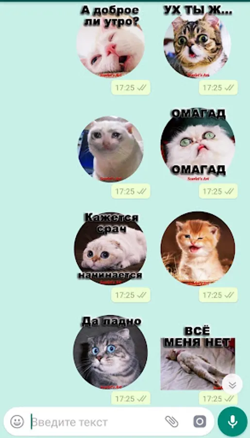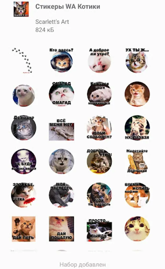 The original set of 30 stickers for WhatsApp with cute, funny, funny cats.