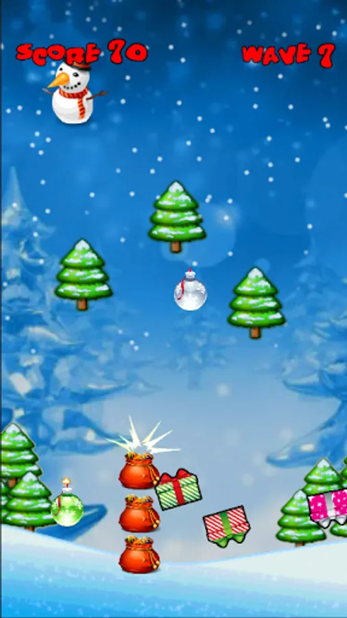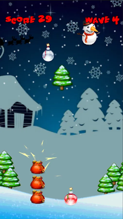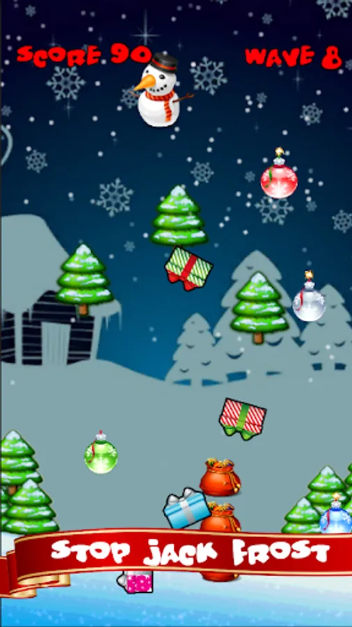 It's Christmas time and evil Jack Frost is here to ruin the holiday by dropping ornaments stuffed with bombs. Stop him with Santa's magical bag of goodies and save Christmas.