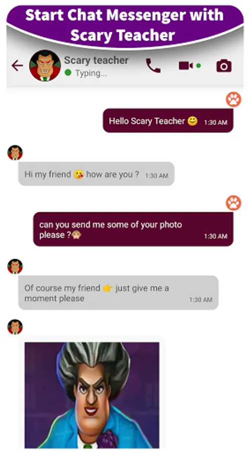 So just choose your methode to call scary teacher, you have 5 option to make chat with scary teacher (live video , calling voice , live chat, calling video)