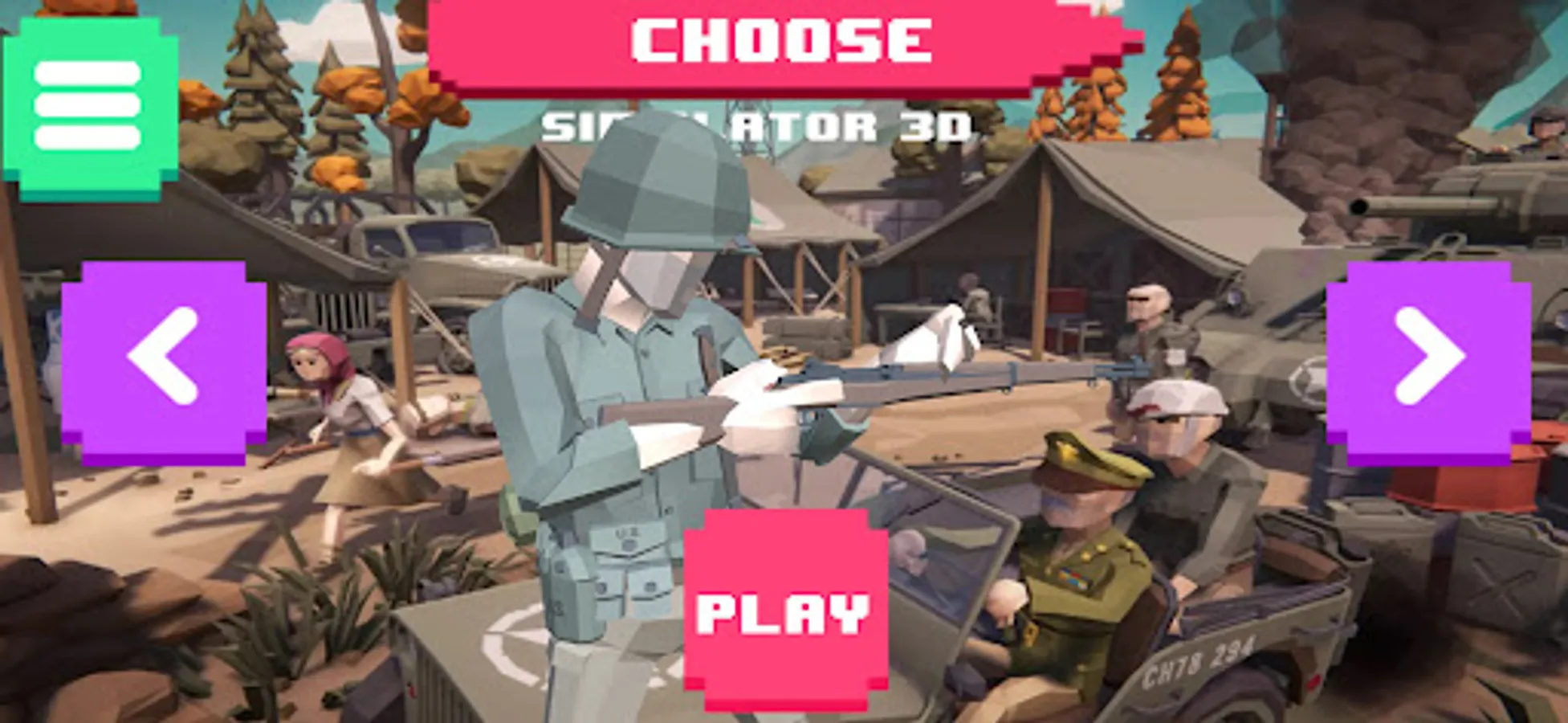 WWII Simulator 3D is a third-person shooter that takes place on WW2. You play as old private John Ryans from Sarge Company! The single-player campaign is the call of epic moments, story cutscenes and heroic duty. Become a toy soldier polygon with dog tag soldier that will go from D-Day in Normandy, through the Battle of Bulge in horror and finally to Berlin. Experience also the Pacific Front in the battle against Japan toys army and army men fight in hacksaw ridges, Okinawa.