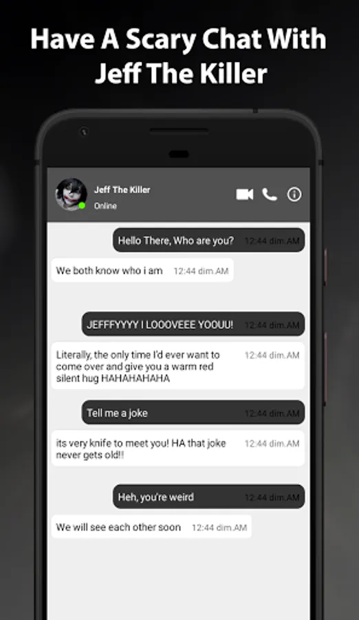 This joke application allows you to make a simulated chat and also allows you to send and receive messages from scary Jeff The Killer.