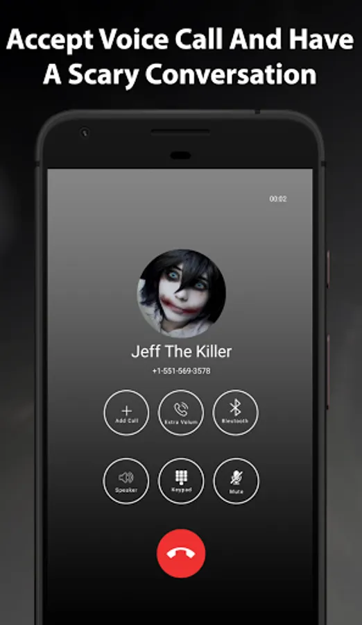 This application is a fake call video of story Jeff The Killer, you will receive a fake call video that looks like a real call.