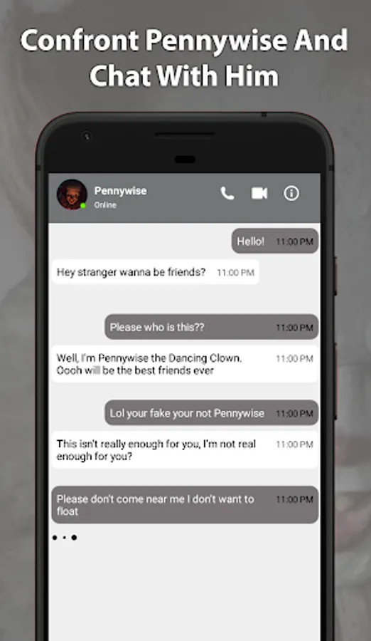 Chat with toy Pennywise - fun game App to simulate chat conversations. Have fun with your friends, making them believe that you are really talking to Pennywise wallpaers.