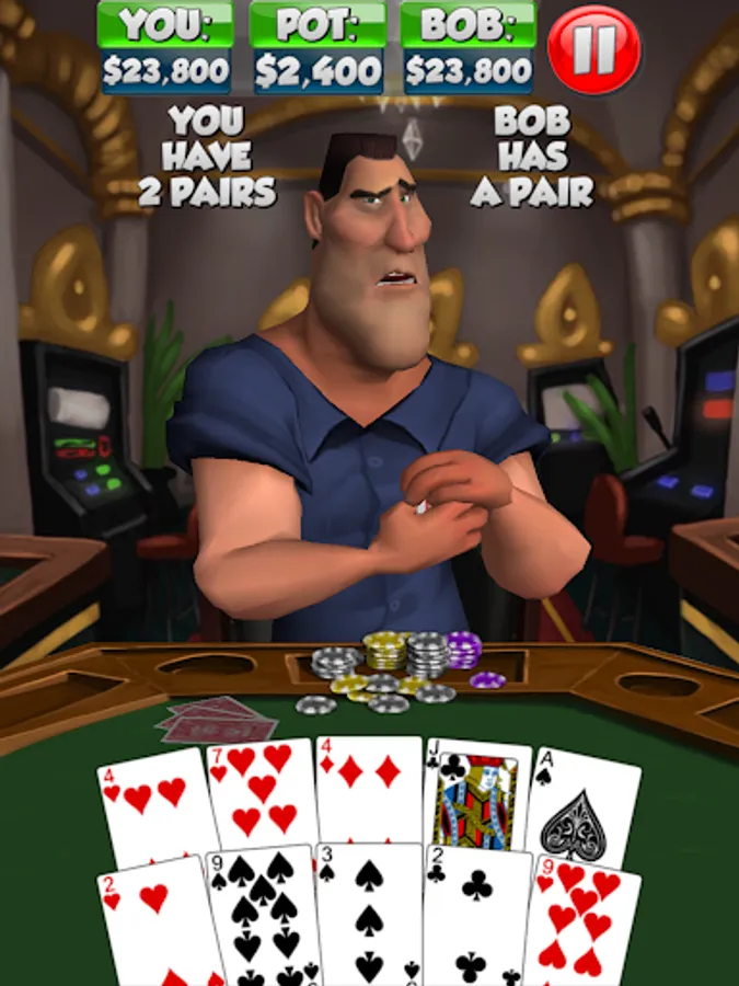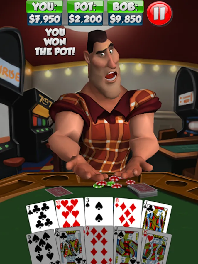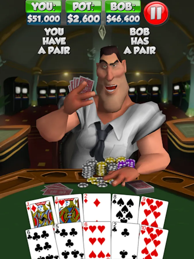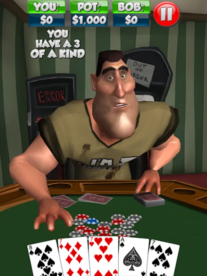 "Poker With Bob" is a draw poker game like no other! The player faces off against Bob, a real time, fully animated 3d character loaded up with several minutes of lip synced animation. He rants and raves when he loses and taunts the player mercilessly when he wins.