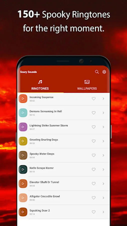 Scary Sounds, a free sound app provides your phone with the best scary sound effects, horror tones, and creepy noises, as well as over 200 scary HD wallpapers for all occasions! Have your own Halloween party on your phone, get the best scary sounds for free! Finally, itβs time that you pick the authentic sounds for your mobile, so pick your favorite horror sounds effects and enjoy your new scary ringtones and sounds on your mobile now!