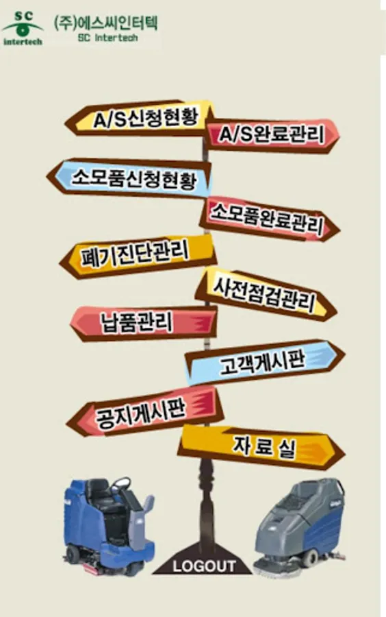 A comprehensive management application that provides environmental equipment in SC Intertech (Mr. S. Intertek). Smartphones and convenient A / S received and purchased supplies from the status management application using equipment status management, disposal diagnosis, you can use the services of pre-inspections.