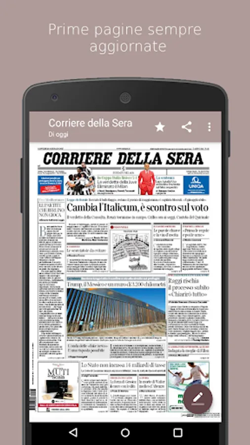 The lightweight and intuitive graphics will allow you to navigate through the first of dozens of national newspaper page and not, and you can circle, underline or highlight the most interesting parts, and share them with friends through your favorite social!