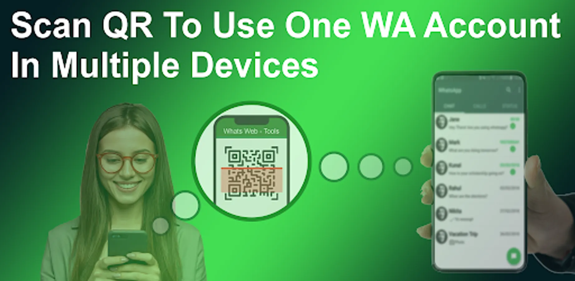 To use Whats scan , you need to scan the QR code of the account you want to access using the app. Once the QR code is scanned, you will be able to see the chats, messages, and other information from the account in the app. You can also send messages and make calls from the app, just like you would with your regular account.