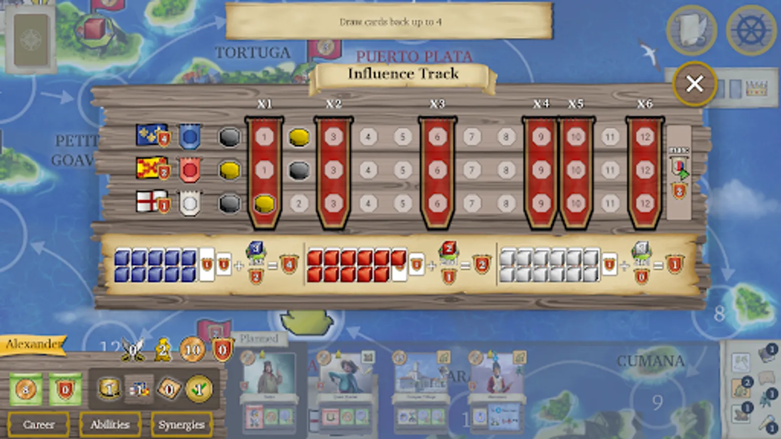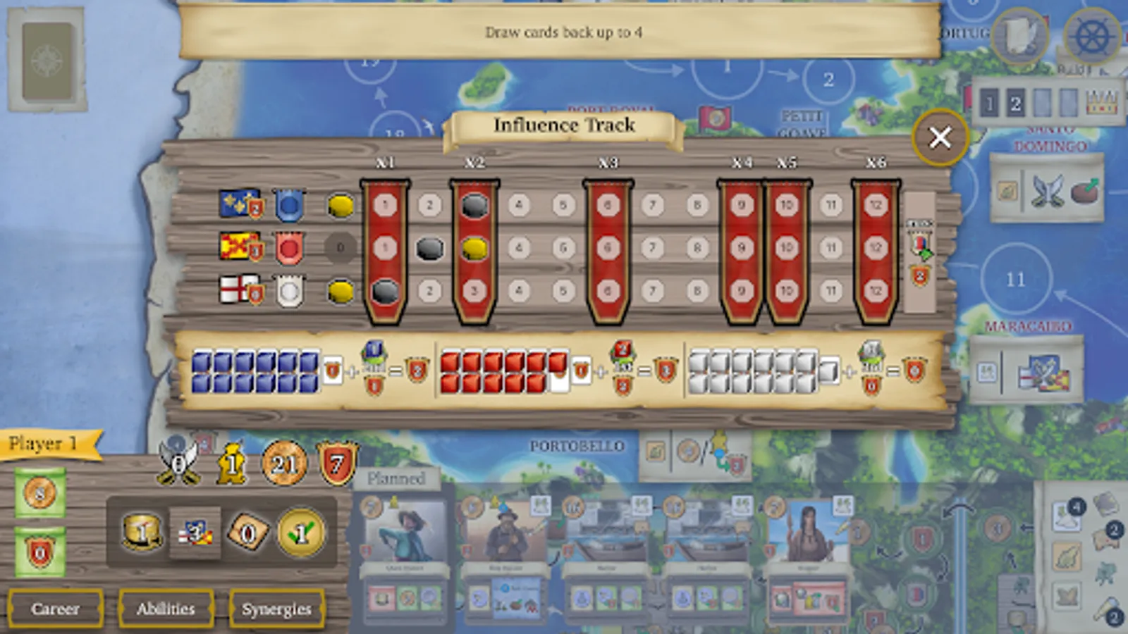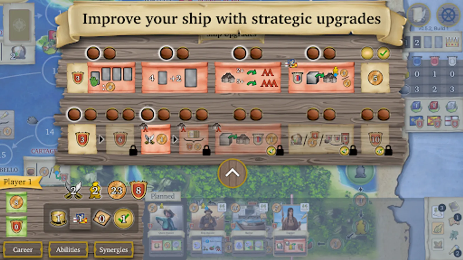 Play as an adventurer and sail around the Caribbean! Upgrade your ship, complete quests, and engage in combat. Every card you buy will unlock new abilities and bonuses to outwit your opponents.