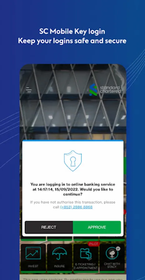 Verify your login and transact with the built-in mobile security Key - SC Mobile Key, without the need to wait for One-Time Password (OTP) via SMS.