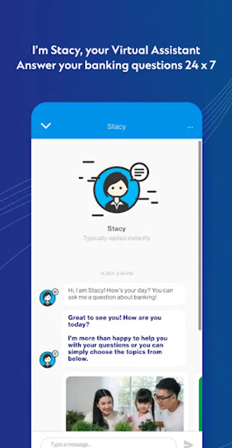 Enjoy 24/7 support for your banking needs with our chatbot — Stacy.
