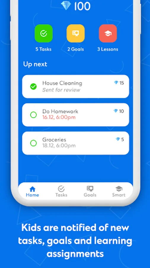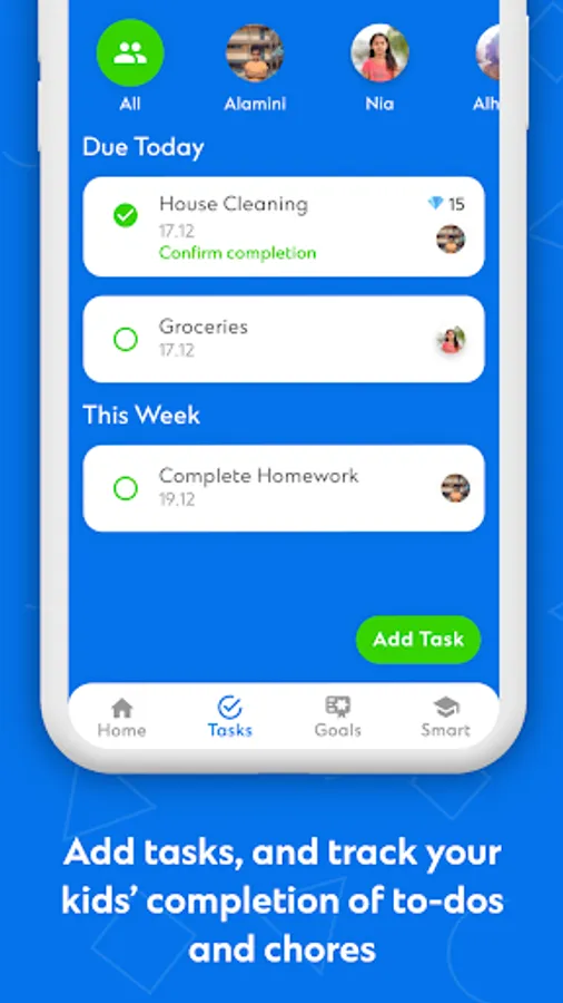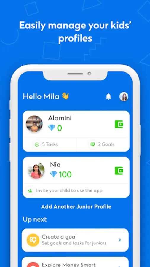 - parents can assign juniors a task (e.g. ‘dad assigned you a task: tidy your room’)