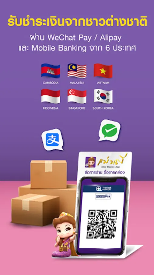 - Handles payments via WeChatPay and Alipay, and mobile banking applications from six other countries: Cambodia, Vietnam, Malaysia, Singapore, Indonesia, and South Korea.