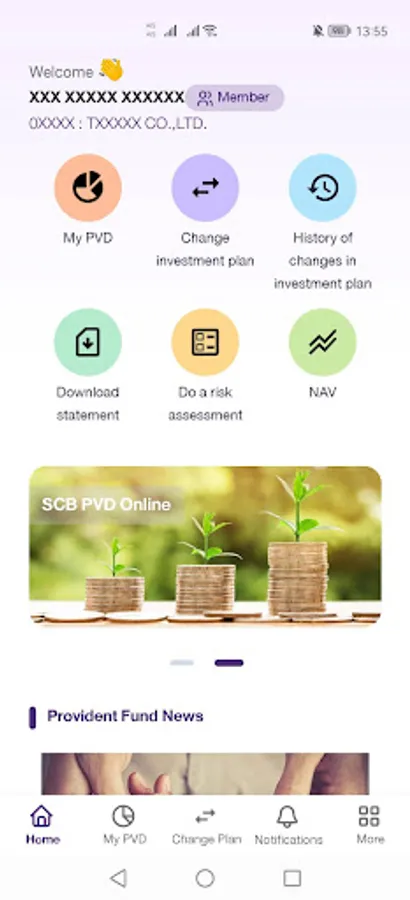 New application, SCB MyProvidentfund, Convenient, easy and up-to-date. Make your investment plans anytime, anywhere for fund coordinators, provident fund committee members and provident fund members with the following services: