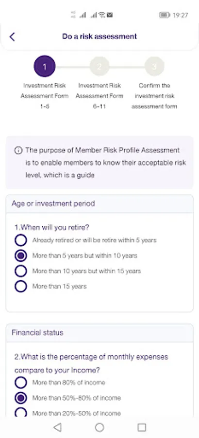 - Risk assessment to measure member's risk appetite and investment recommendations to suit member's risk appetite