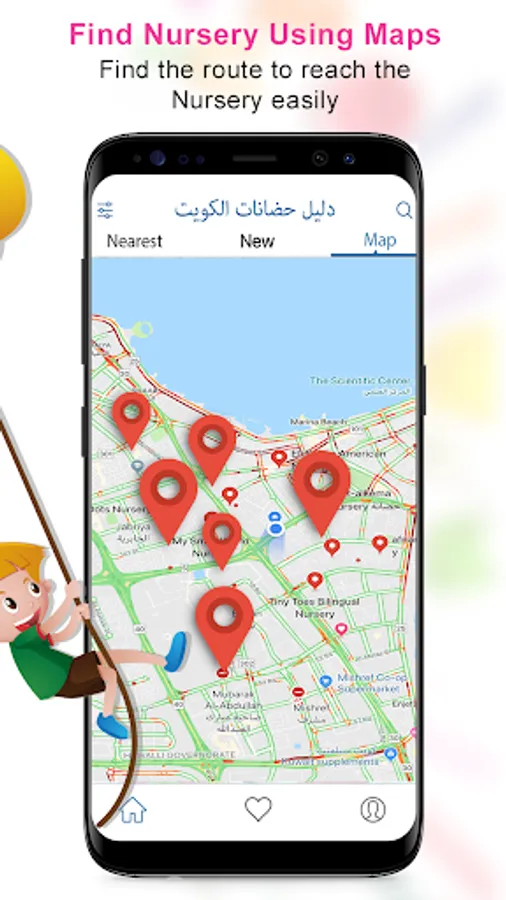 Through application you can search nurseries based on where you are located. Providing you with their address and phone number and photos. Through the Nursery Guide you can find the nursery that is right for you and your kids.