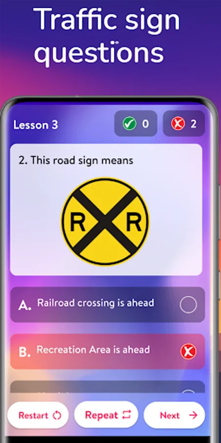 However, we do not recommend the retry option so that you can get a clear picture of your knowledge of the CA DMV test at the end.